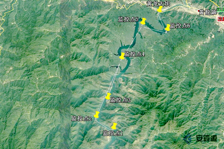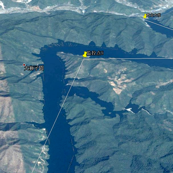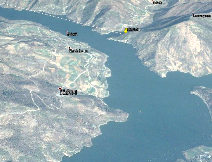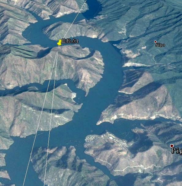各監(jiān)控點具體布局如下:(常規(guī)蓄水期間,主河道海拔約239米)