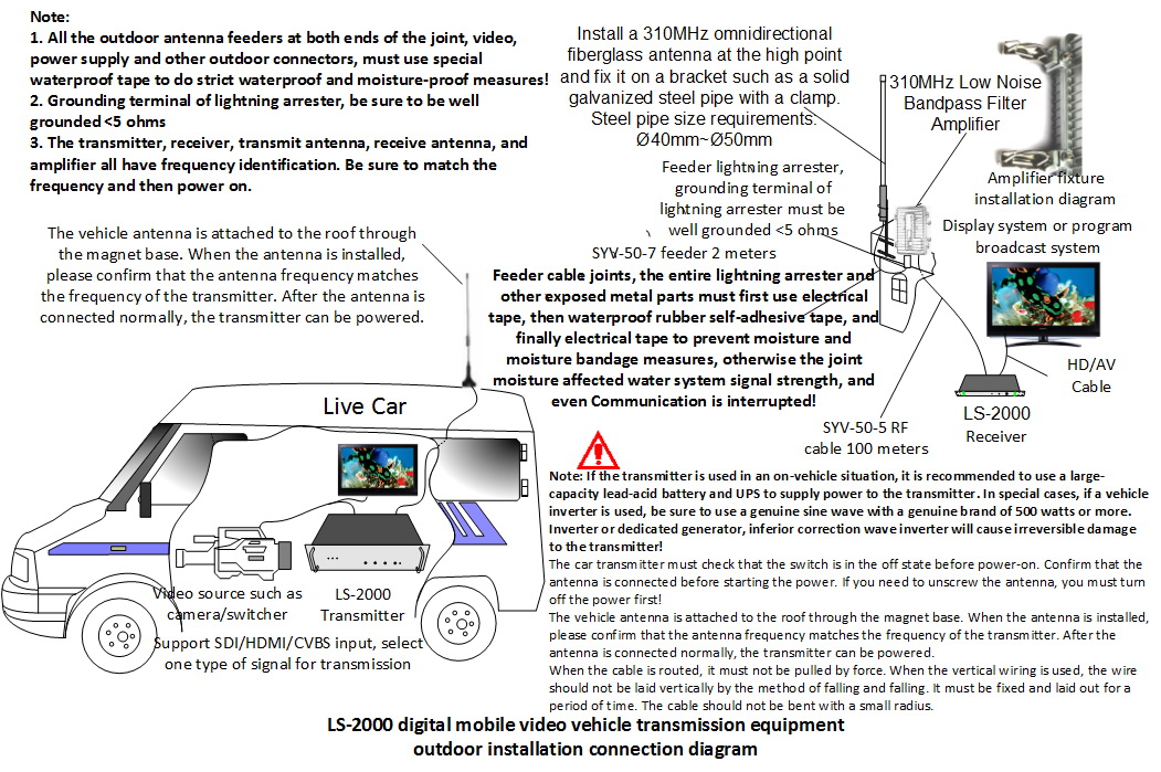 車載式COFDM無線圖像發射機,完全符合MPEG-2/DVB-T技術標準,采用COFDM調制技術,通過無線方式將音、視頻信號向外發射。接收設備安裝在基站上,采用我公司自主研發的LS-2000系列無線高清晰移動接收設備,設備符合 MPEG-2/H.264/DVB-T 技術標準(Plus版本支持H.265) , 設備采用COFDM解調技術,通過無線方式接收從指揮車上發射過來的音、視頻信號。 適用于車—車、船—船、車—固定點、船—固定點、飛機—固定點,遠距離高清晰圖像傳輸,也可用做遠距離圖像中繼,配合全向天線,空中通視條件下傳輸距離最遠可達50公里以上。 可以根據用戶需求,定制 HD-SDI,HDMI全高清發射機,支持1080P分辨率。